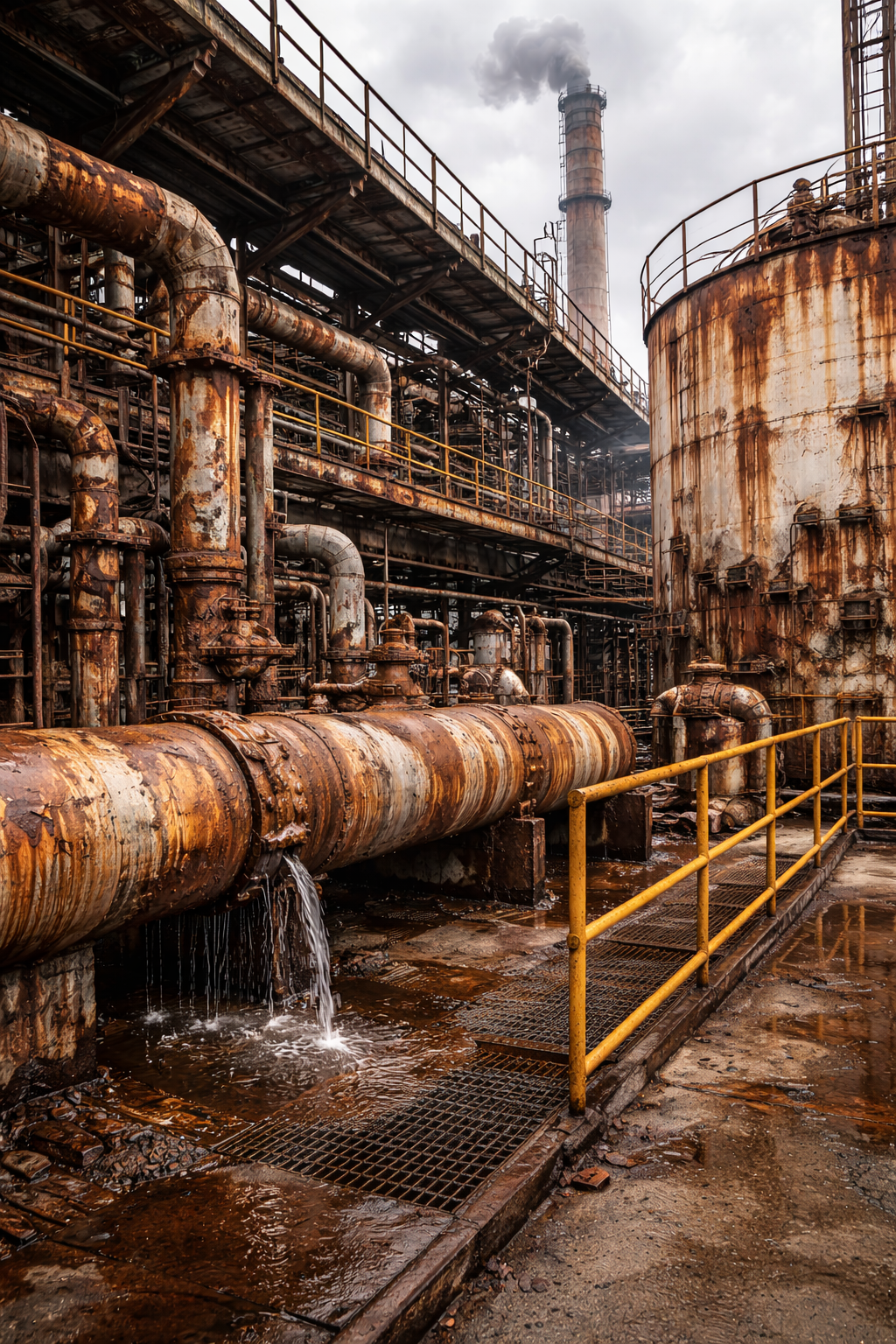 Kurangnya inspeksi dan perawatan rutin menyebabkan korosi berkembang tanpa terdeteksi. Paparan bahan kimia dari proses produksi yang tidak dibersihkan secara berkala juga memperparah kondisi material bangunan industri.