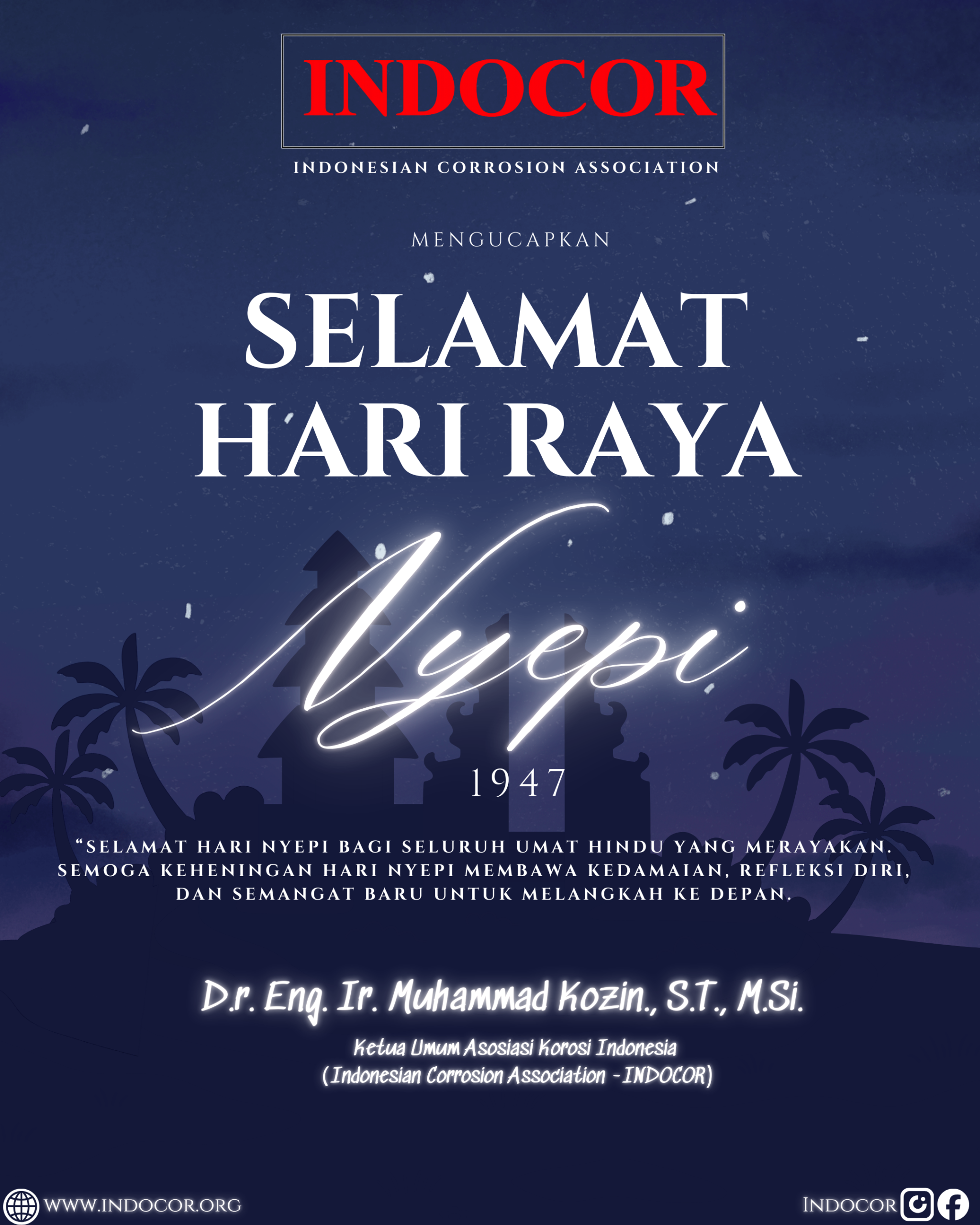“Selamat Hari Nyepi bagi umat Hindu yang merayakan. Semoga keheningan hari nyepi membawa kedamaian, refleksi diri, dan semangat baru untuk melangkah kedepan”